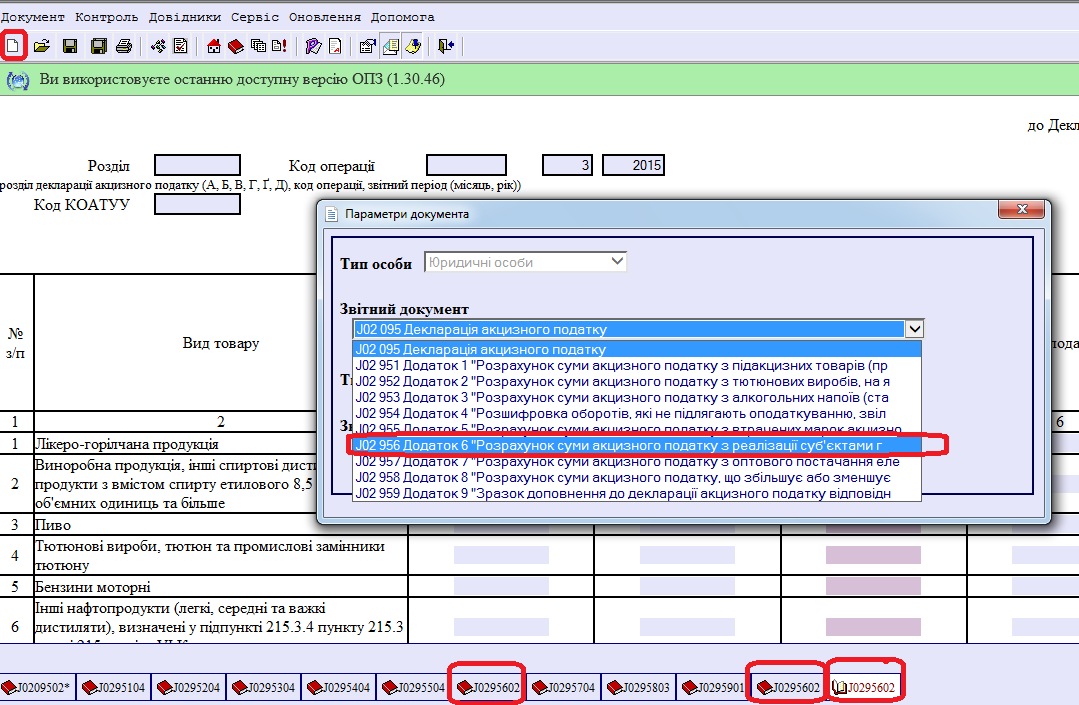akula7 писал(а):Я создаю отчеты в ОПЗ ,а отправляю через "Медок", т.к. подписываю ключами "Медка".Я просто не знаю,как в ОПЗ открыть еще одно приложение додаток 6. К акцизной декларации открывается только 1 комплект приложений. Если окрывать еще одну декларацию, то при ее удалении удаляются и приложения.В налоговой мне никто не может ответить. В прошлом месяце в ручном режиме я сдавала декларацию с 2-мя приложениями №6, так как объекты находятся в разных районах, и мне сказали , что нужно сдавать 1декларацию с 2-мя додатками, но как это сделать в електронном виде никто не знает.