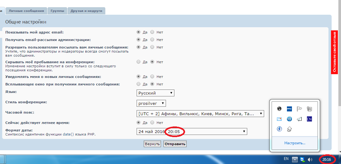 SonataEvol писал(а):У профілі обрав часовий пояс "+2 ... Київ", але час у темах та повідомленнях запізнюється на 1 годину. Коректно тільки, якщо обрати пояс Москви.