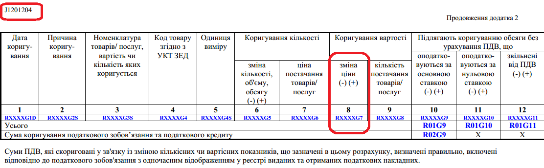petrova-ta писал(а):Помогите форма J1201204 Розрахунок коригування кількісних і вартісних показників до податкової накладної не проходит проверку пишет