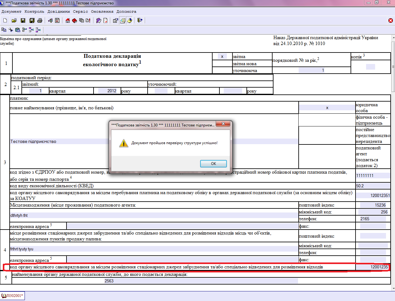 В форме отчетности "Податкова декларація екологічного податку" (J0302001) во время проверки структуры выдает ошибку связанную с HNY(Порядковий номер за рiк). Убираю эту ошибку выдает ошибку с HLOATUU1. подскажите как быть?