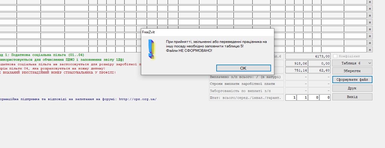 Если движения сотрудников нет, табл.5 не заполняется и не формируется.