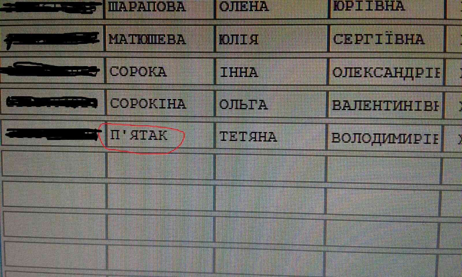 Ошибка в написании фамилии П'ятак.