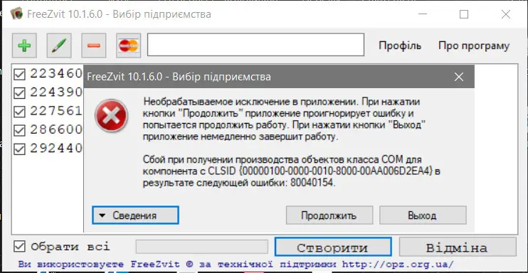 Якщо у папці ФріЗвіту або \FreeZvit\fop\backup\ є файл Zvit_tmp.mdb, видаліть його.