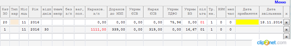 Вторая строка - зарплата. Если меньше минималки, то в графе "дорах. до МЗП" укажите разницу (должно заполниться автоматически). Эта строка будет разделена на 2 строки - зарплата и доплата до минималки с типом 13.