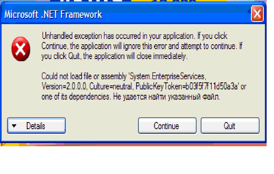 System.IO.FileNotFoundException: Could not load file or assembly 'System.EnterpriseServices, Version=2.0.0.0, Culture=neutral, PublicKeyToken=b03f5f7f11d50a3a' or one of its dependencies. Не удается найти указанный файл.