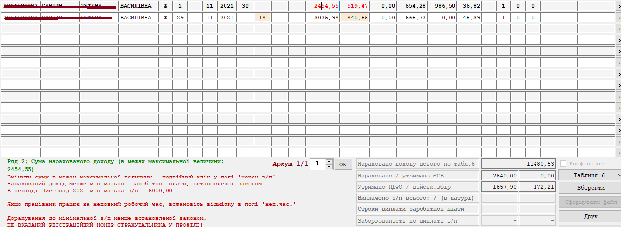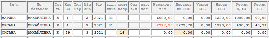 Червоним світиться тому, що нарахована з/п менше мінімалки.