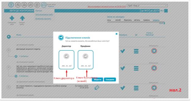 • у поле «Працівник» слід підключити Ваш новий ключ ЕЦП, повідомлення, про якого і потрібно подати для активації ключів (див. – мал.2);