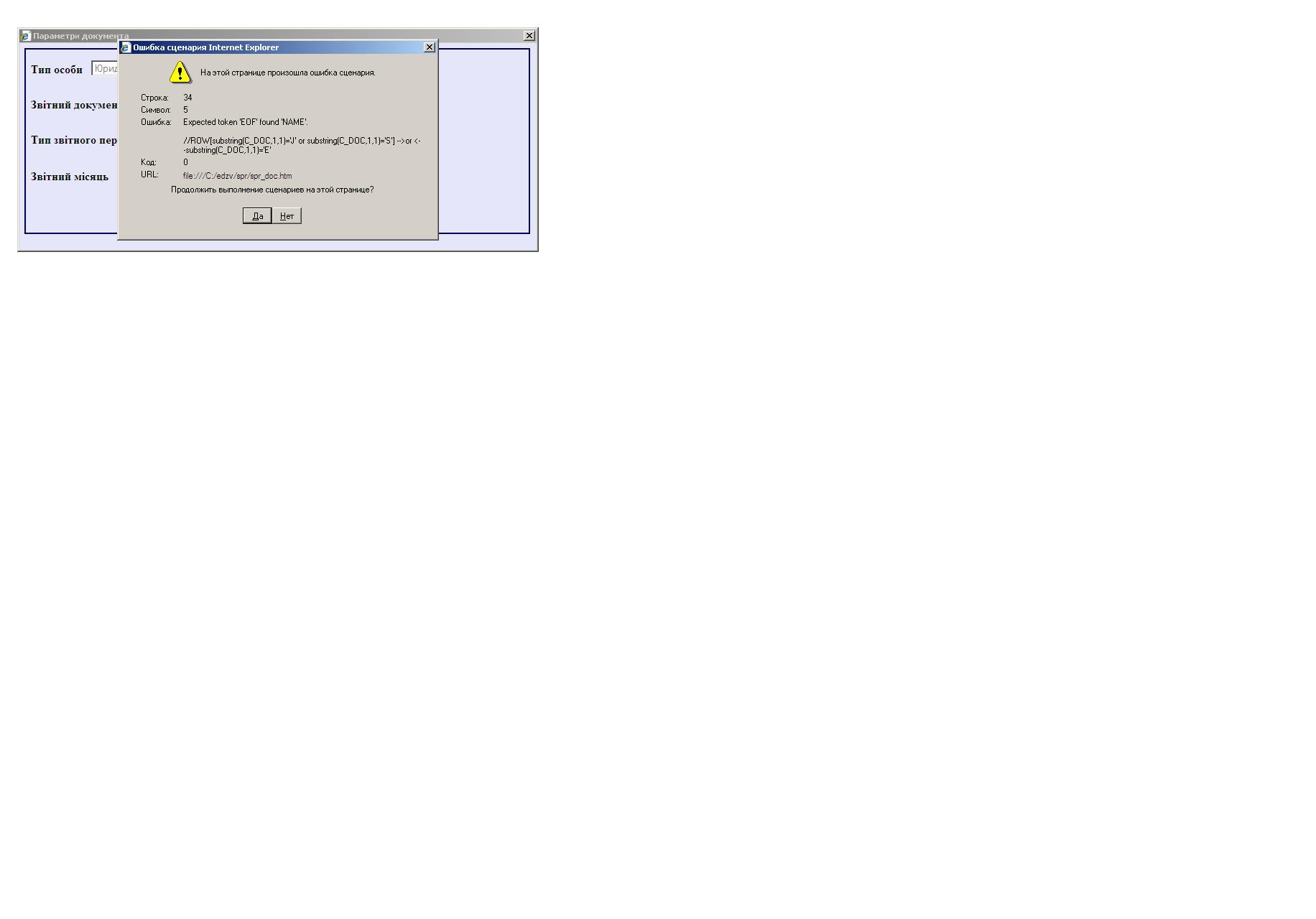 Подскажите в чем дело, установила программное обеспечение, для уже введенного примерного предприятия отчеті создаются. Когда ввела параметры своего предприятия при попытке создать новій отчет мне выдает ошибку - .