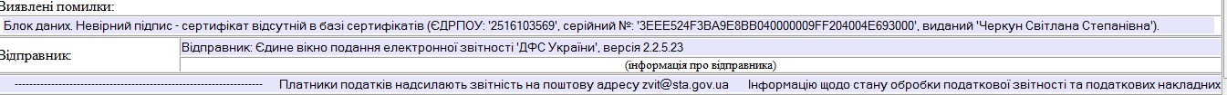 Сертифікат прийомного шлюзу Фіскальної служби не знайдено в сховищі (серійний номер = 3EEE524F3BA9E8BB040000000D8219007DF42E00).