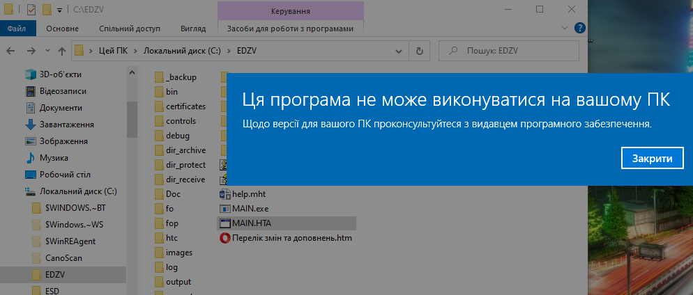 Ця програма не може виконуватися на вашому ПК