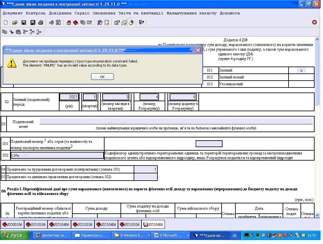 - дає повідомлення «НЕ заповнено елемент "HNUM1"» :? (номер додатку в Розрахунку Д4ДФ) (скрін про це додається). Нумерацію розрахунків та додатків перевірив – однакових немає