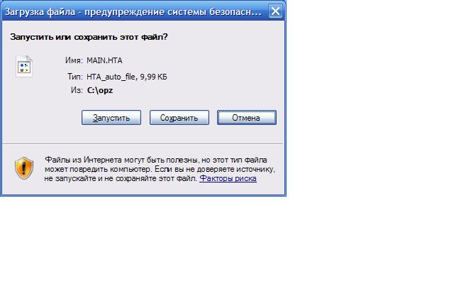 ygolovko писал(а):Здраствуйте. Не запускается ОПЗ. Выдает ошибку Main.hta не является приложением win32/