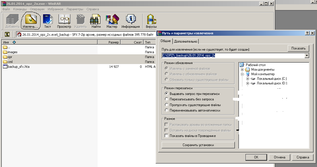 Или у Вас ошибка уже после распаковки во время запуска ОПЗ?