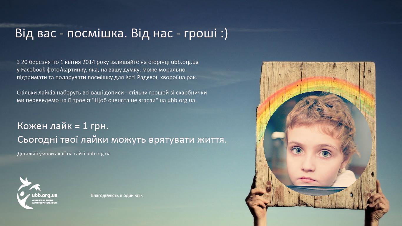 Каждый Like под фотографией/картинкой на Facebook - это 1 гривна пожертвования для Кати.