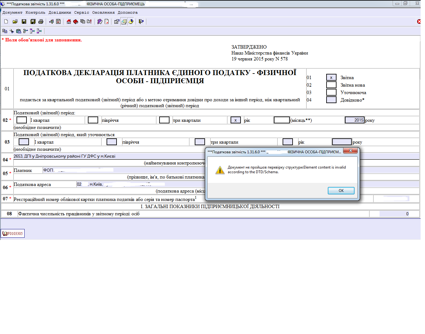 pixel писал(а):Добрый день. Не проходит проверку структуры документ Налоговая декларация плательщика единого налога ФЛП, выдает ошибку Element content is invalid according to the DTD/Schema. Пересмотрела на форуме и не нашла ответа. Подскажите, пожалуйста, где искать? OPZ 1.30.35