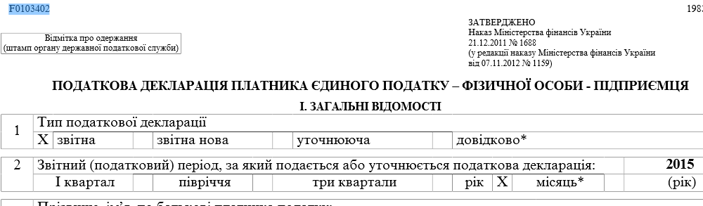 majster писал(а):admin писал(а):majster писал(а):Підкажіть будь ласка, я підприємець першої групи,відправив звіт, F0103402 і отримав відповідь -Документ не може бути прийнятий - закінчення дії форми - грудень 2014 р. Як мені діяти? Дякую.