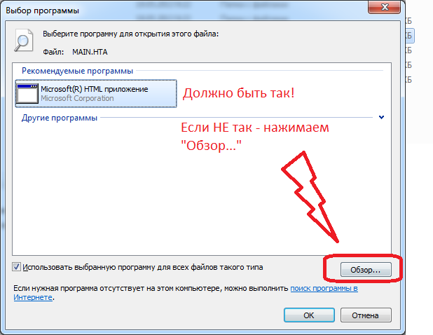 На файле MAIN.HTA правой кнопкой мышки в меню выбираем "Открывать с помощью..."