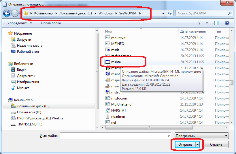 Указываем каким приложением нужно открывать OPZ: C:\Windows\SysWOW64\mshta.exe
