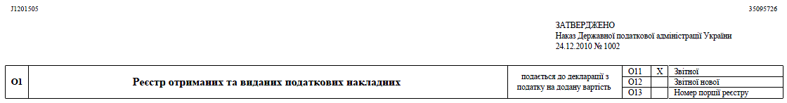 а согласно бланка должно быть: "Реєстр виданих та отриманих податкових накладних"