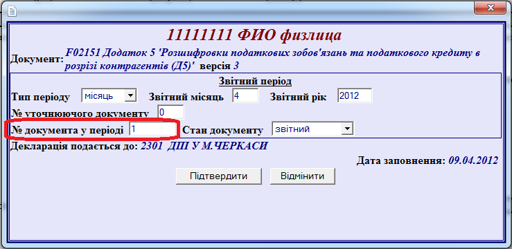 bogolib писал(а):Допоможіть, будь-ласка. При повторному відправленні виправленого документа:(Дека з ПДВ, Дод5,реєстр) приходить Квитанція №1 з виявленою помилкою:ДОКУМЕНТ НЕ ПРИЙНЯТО Документ вже зареєстровано в системі з іменем ******.xml присутній в архіві електронних документів з реєстр. номером **** При необхідності змініть номер документу в імені файлу і повторно відправте.